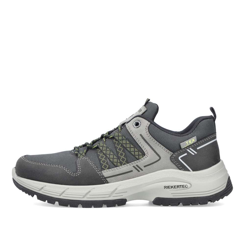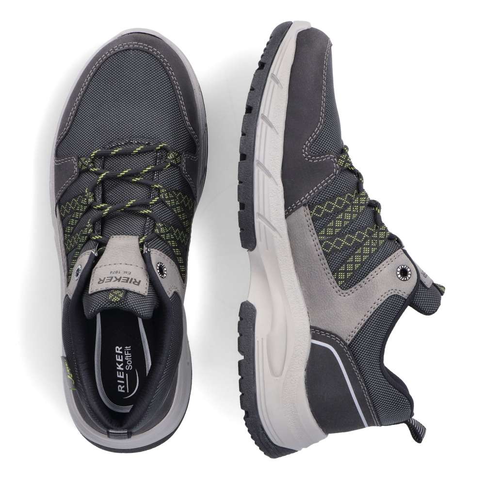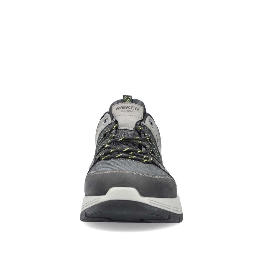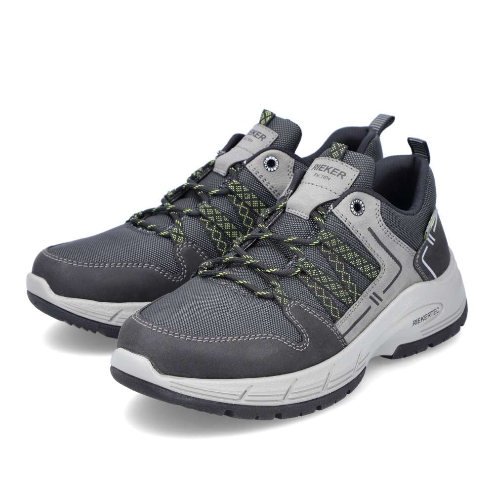 Sportovní tenisky značky RIEKER čekají v naší nabídce přímo na Vás. Šedý svršek v kombinaci s nepromokavým textilem, nápisem RIEKER na jazyku a poutkem na patě pro lepší obutí. Snadné nazutí zajistí pevné tkaničky a pohodlí na každém kroku budete mít s paměťovou vyjímatelnou stélkou MemoSoft. Šedá podešev s technologií antistress doladí vaše pohodlí k dokonalosti. Tento model oceníte k jakékoliv sportovní aktivitě nebo procházce se svým pejskem.