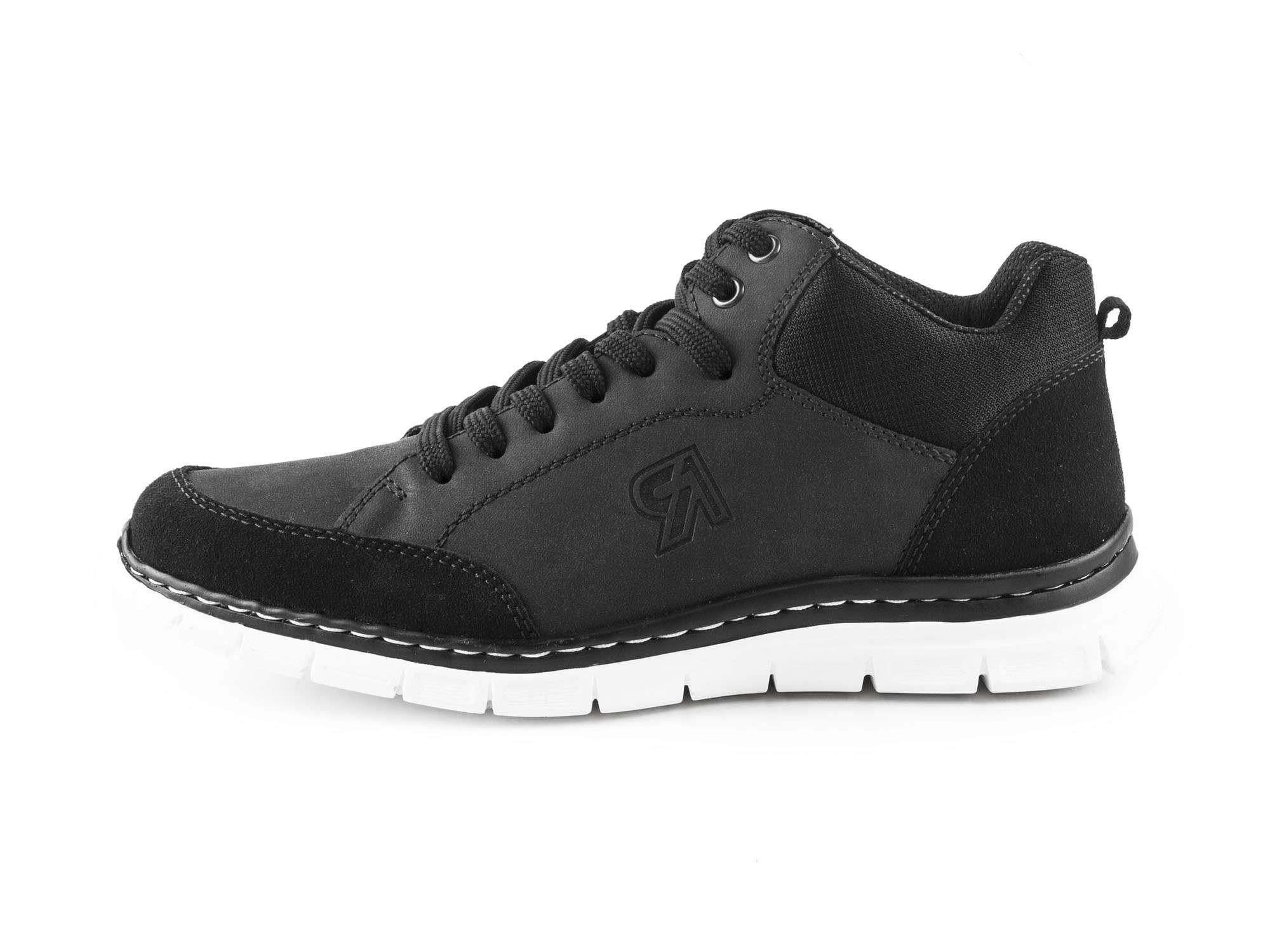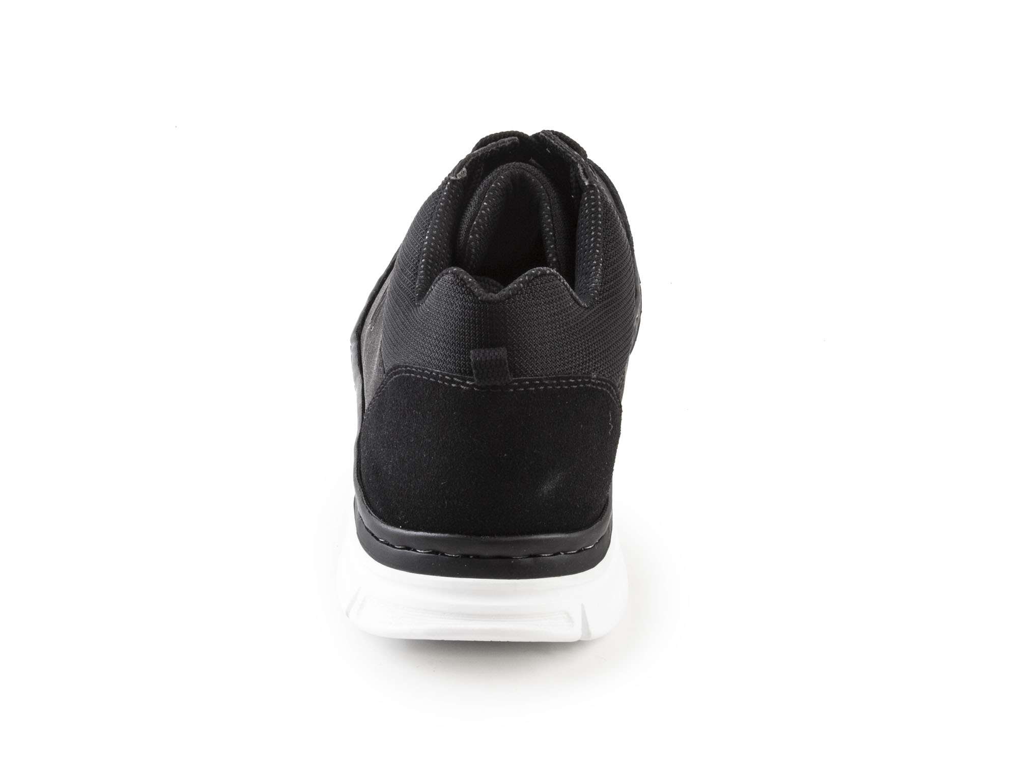 Tenisky jsou vyrobené ze syntetického materiálu v kombinaci se syntetickou textílií. Jsou celé v černé barvě, včetně plochých tkaniček. Tenisky jsou imitací matné kůže. Na špičce a patě jsou díly připomínající broušenou kůži. Kolem otvoru pro nohu je široká textilíe, která má na patě poutko pro efekt. Tenisky jsou prošité černou nití a na vnější straně jsou zdobené písmenem R. Celkově jsou tenisky vyšší, jako např. basketballová obuv.