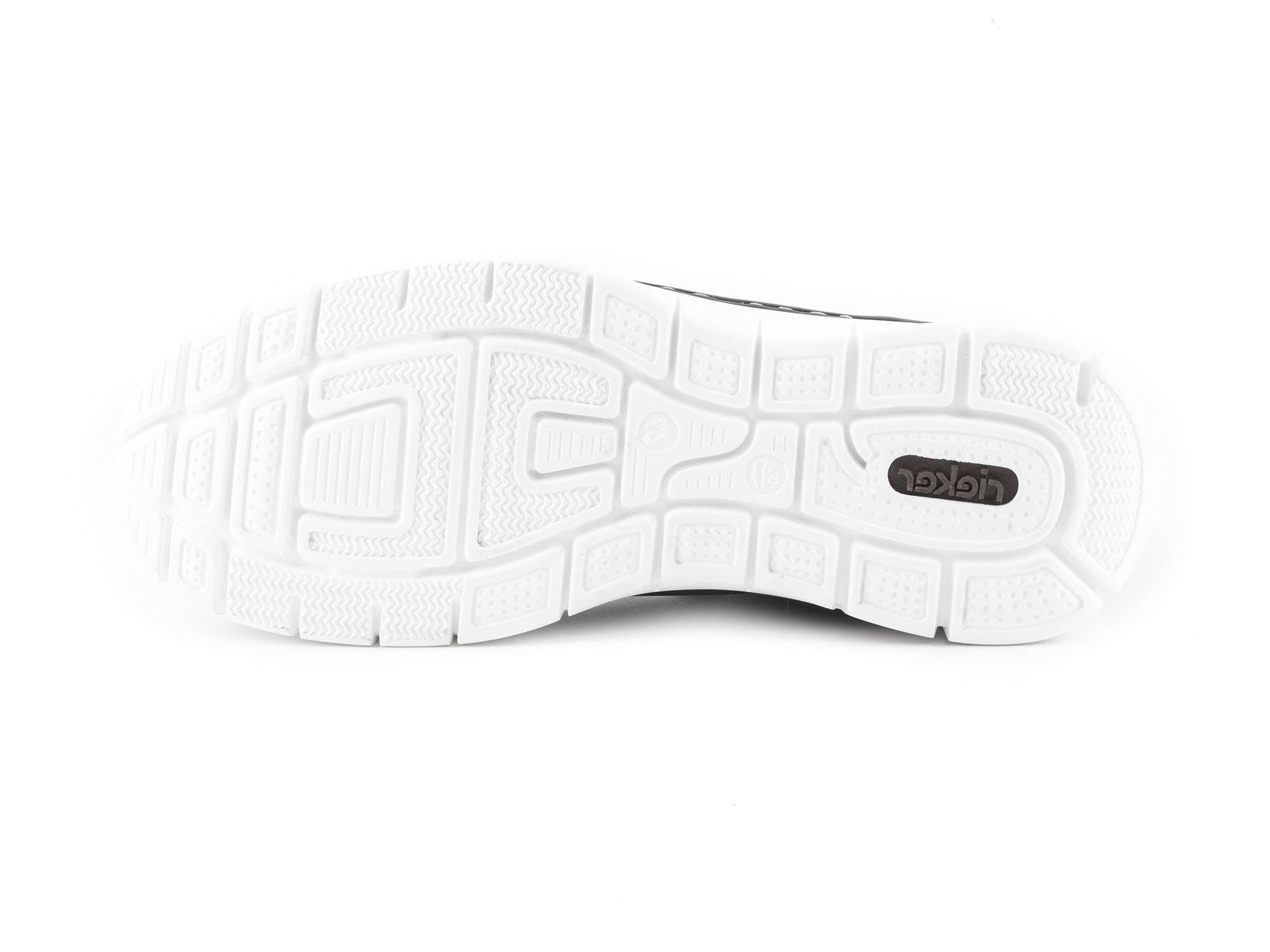Pánské tenisky s bílou podešví, šněrováním a měkčenou stélkou značky Rieker.