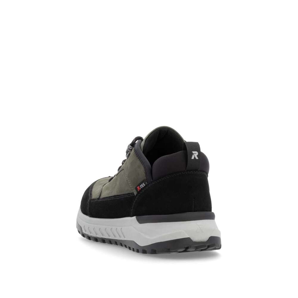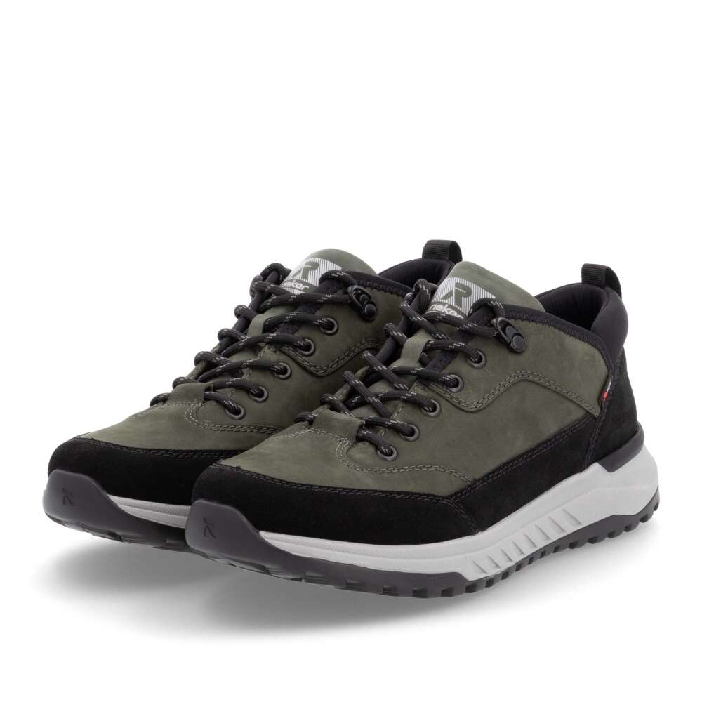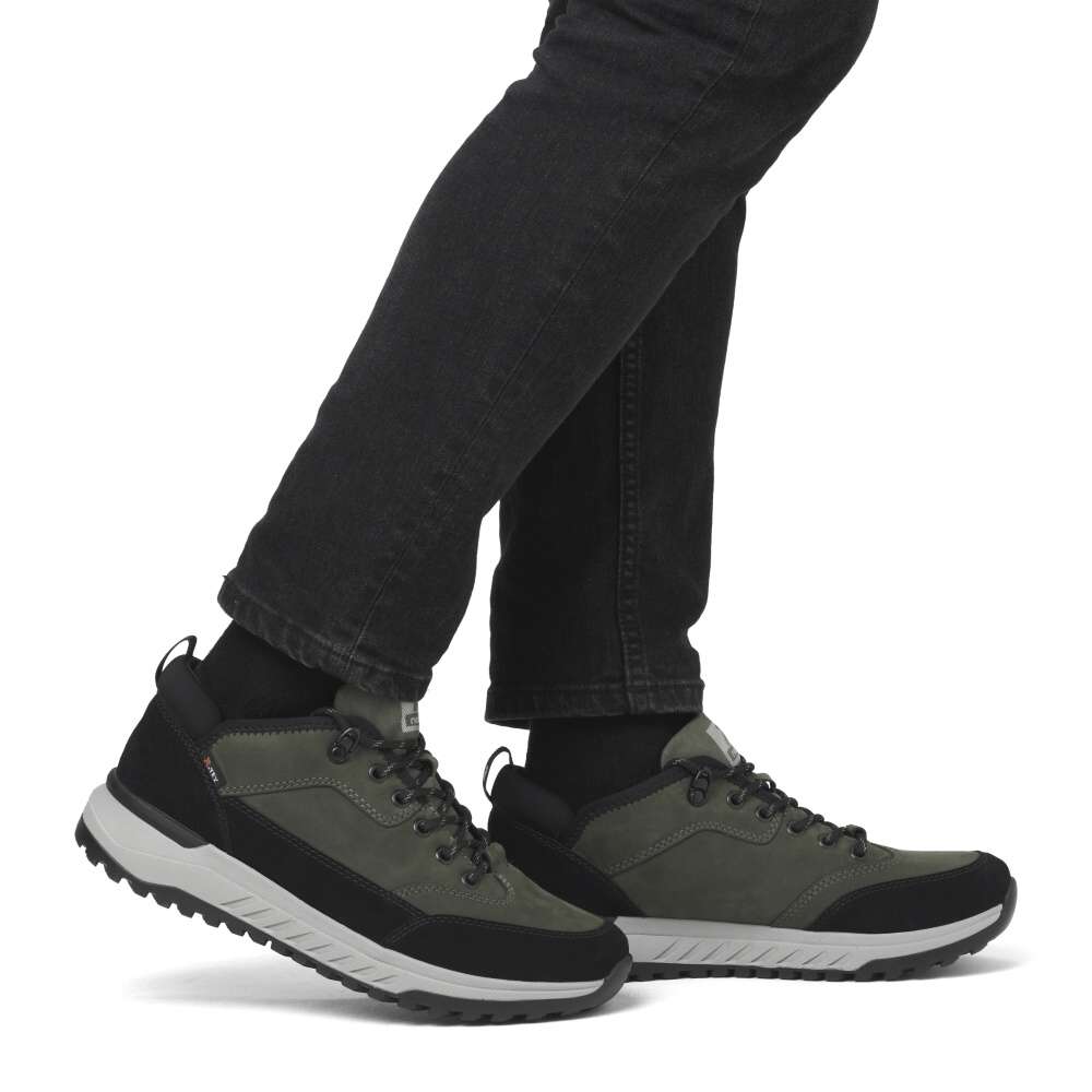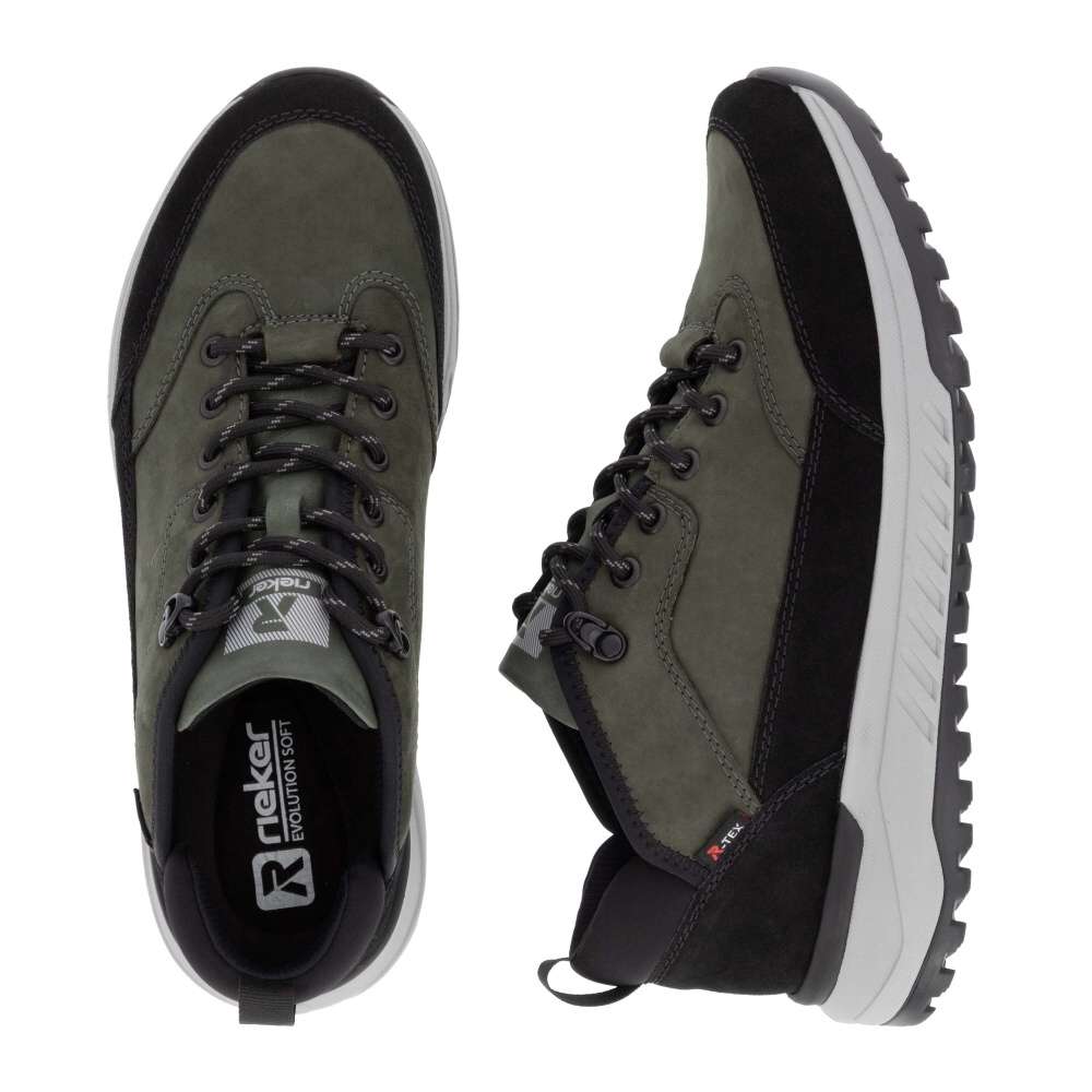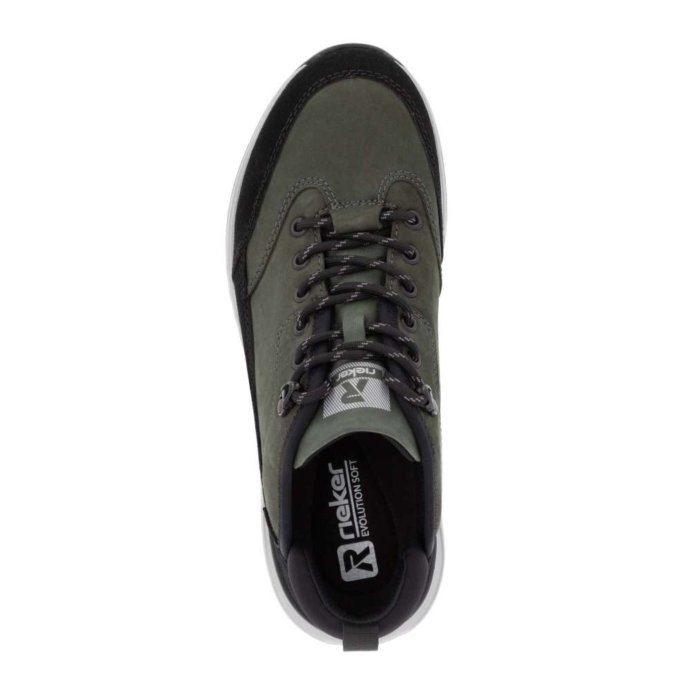Rieker Revolution je nová řada moderní sportovní obuvi s obrovským důrazem na komfort a pohodlí i při celodenním nošení. Tyto boty pro pány nezklamou svým vzhledem, ani funkcemi pro maximální komfort při nošení. Jsou vybaveny nepromokavou membránou materiálu svršku, což zajišťuje ochranu proti vlhkosti v nepříznivém počasí. Měkká vyjímatelná stélka a funkční šněrování na nártu poskytují pohodlí a perfektní přizpůsobení. Kombinace materiálů v kontrastních barvách a výrazná podešev dodávají botám nejen stylový vzhled, ale také stabilitu při chůzi. Jsou ideální volbou pro muže, kteří chtějí spojit kvalitu, komfort a moderní design ve své obuvi. Technologie: RevolutionSoft – unikátní stélka, která změkčuje došlap a přizpůsobí se tvaru Vašeho chodidla. Revolution TEX – funkční vrstva, díky které je svršek boty nepromokavý a přesto prodyšný. Tato bota je vybavena vyjímatelnou stélkou.
