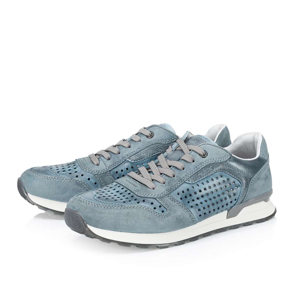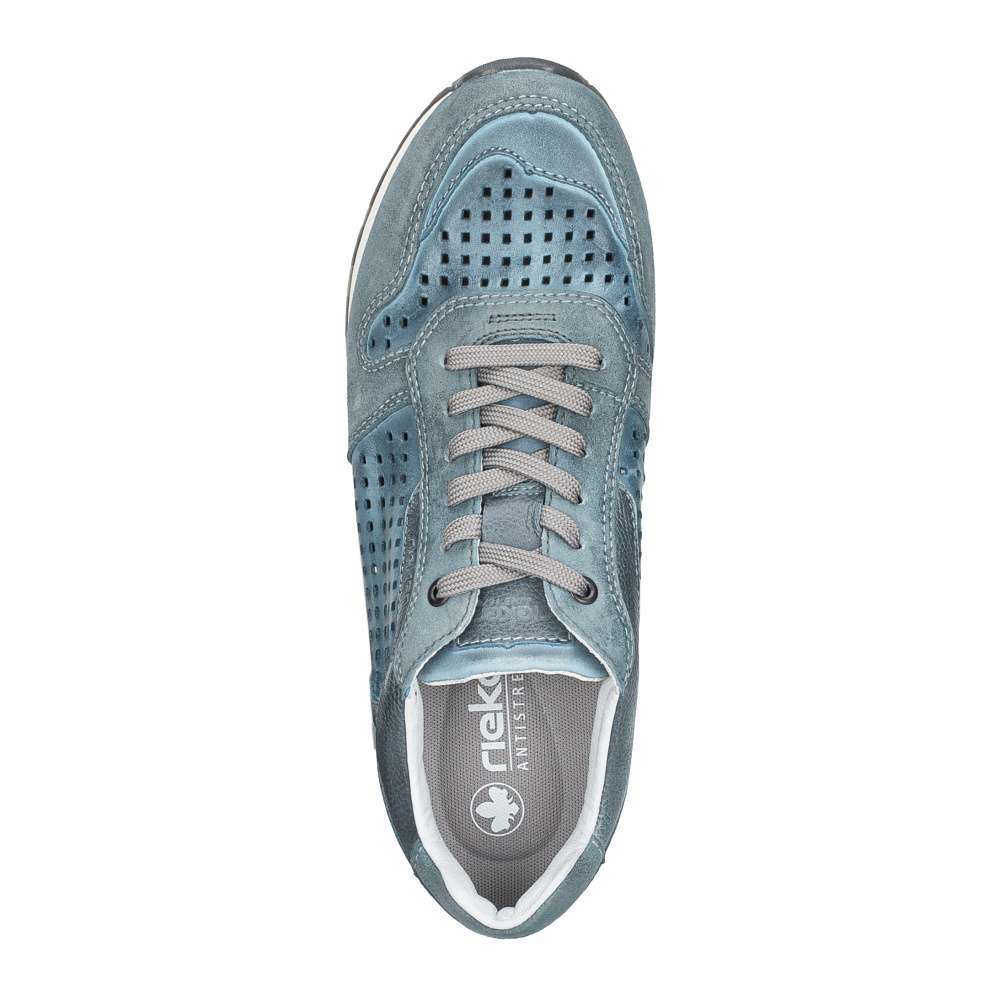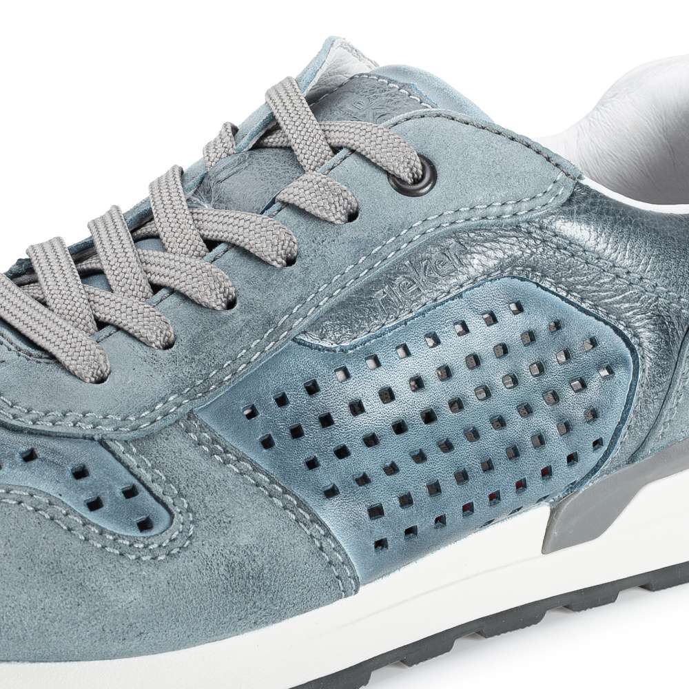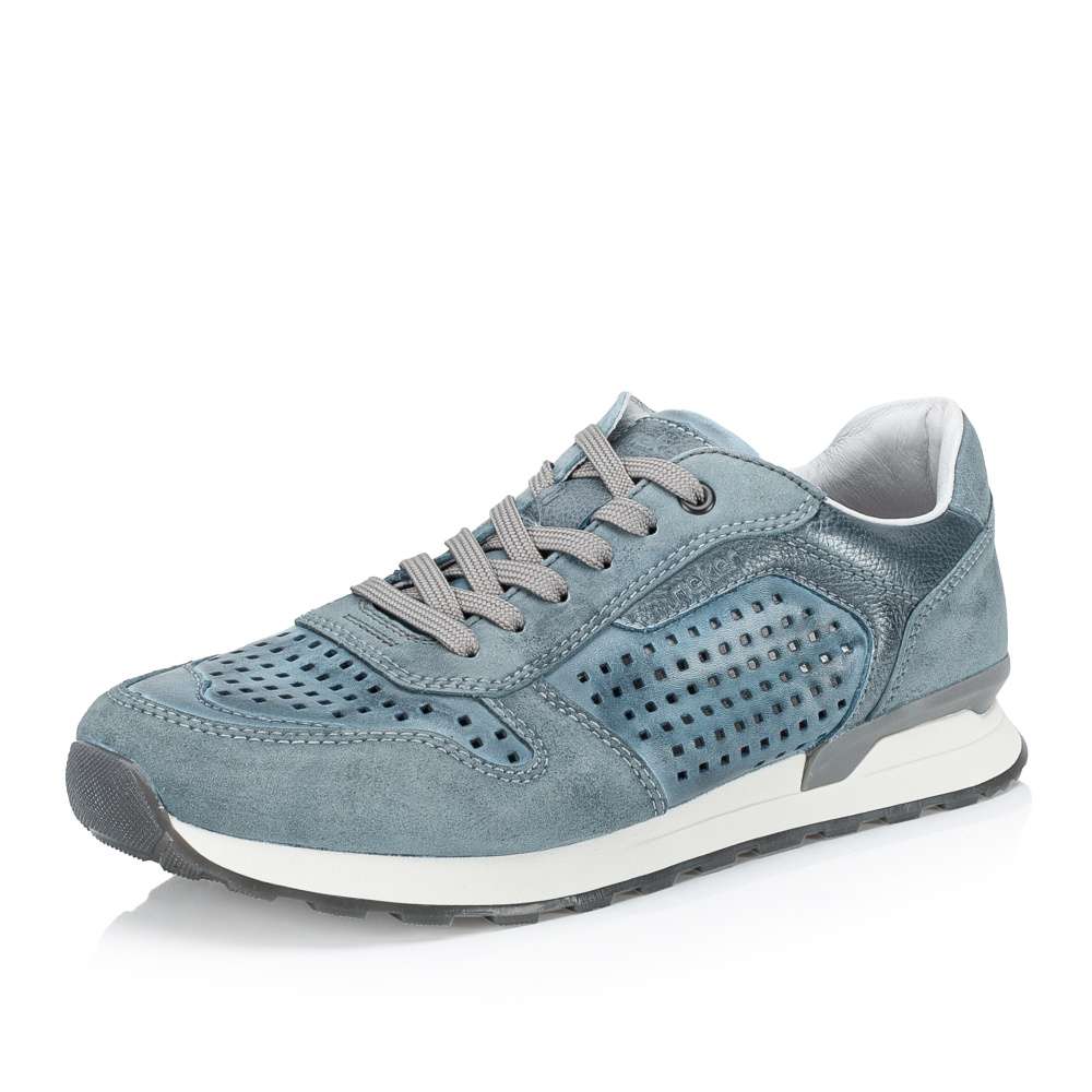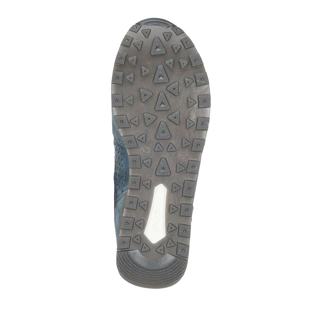 Užívejte si sportovní styl s botami značky RIEKER. Tyto kožené tenisky v mladistvě modré barvě představují skutečný originál v obutí. Unikátní perforovaný vzor dodává obuvi svěží a moderní vzhled, zatímco šněrování zajišťuje optimální přizpůsobení noze. Vyjímatelná stélka je měkká a příjemná na došlap, což poskytuje maximální pohodlí při každodenním nošení. Designově propracovaná podešev navíc přidává botám styl a zároveň zajišťuje pohodlnou chůzi. Ideální volba pro ty, kdo chtějí spojit jedinečný vzhled s praktickým komfortem. Technologie: Rieker Soft – unikátní stélka vyrobená z prodyšného materiálu, která svým tvarem a materiálem zajistí pocit pohodlí při celodenním nošení. Tato bota je vybavena vyjímatelnou stélkou. Antistress – podešev je díky této technologii lehká, flexibilní, absorbuje nárazy při došlapu a snadno se přizpůsobí každé noze.