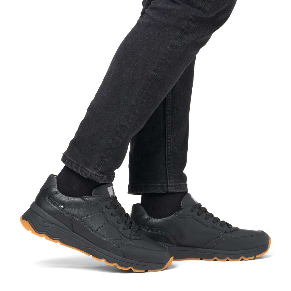 Užívejte si sportovní styl s botami značky RIEKER. Černé kožené tenisky značky Rieker jsou základním prvkem v každém pánském šatníku, pokud je nemáte máme pro vás tento model. Díky logu na nártu a precizním liniím prošití, se boty stanou nevšedními. Maximální pohodlí Vám zajistí vyjímatelná stélka, která Vám s každým krokem připomene, že se díky našim botám můžete cítit jako v bavlnce. Klasické šněrování je samozřejmostí pro dokonalou úpravu a zjednodušení nazutí. S koupí těchto tenisek určitě nepochybíte, hodí se do práce i trávení volného času s rodinou. Dokonalá souhra moderního vzhledu a maximálního pohodlí díky funkčním technologiím to jsou boty RIEKER Sport. Technologie: Rieker Soft – unikátní stélka, která změkčuje došlap a vytváří dokonalou oporu chodidlu. Tato bota je vybavena vyjímatelnou stélkou.