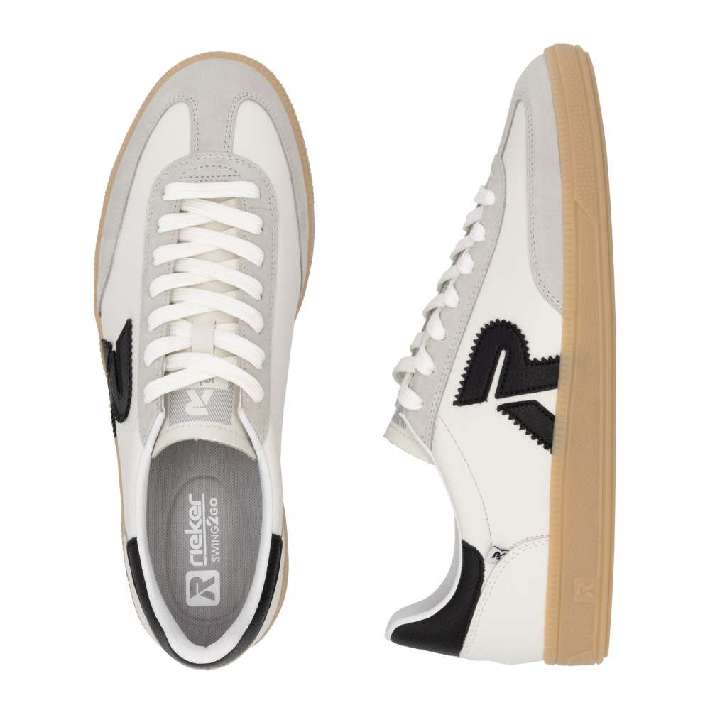 Užívejte si sportovní styl s botami značky RIEKER. Tyto kožené tenisky značky RIEKER jsou ideální kombinací stylu a pohodlí. Jejich barevný design je doplněn kontrastním logem na boční straně, které jim dodává originální vzhled. Šněrování zajišťuje přizpůsobení podle potřeby, zatímco podešev poskytuje stabilitu každým krokem. Tyto tenisky jsou skvělou volbou pro každodenní nošení v městském stylu, které se hodí pro různé příležitosti. Dokonalá souhra moderního vzhledu a maximálního pohodlí díky funkčním technologiím to jsou boty RIEKER Sport. Technologie: Swing2GO – extra měkká stélka ve tvaru oblouku, která podporuje přirozený tvar chodidla a nabízí efektivní tlumení nárazů. Tato bota je vybavena vyjímatelnou stélkou. Antistress – podešev je díky této technologii lehká, flexibilní, absorbuje nárazy při došlapu a snadno se přizpůsobí každé noze.
