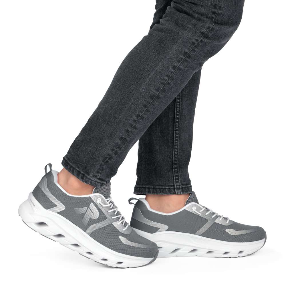Dopřejte si originální styl a prvotřídní komfort v jednom kroku se značkou RIEKER. Tyto pánské tenisky zaujmou už na první pohled dynamickými liniemi vedenými po šedém svršku a dominantním logem, které jim dodávají sebevědomý, městský charakter. Textilní svršek se přirozeně přizpůsobí tvaru nohy, čímž zajistí pohodlné nošení bez nepříjemného tlaku a zároveň vyniká výbornou prodyšností. Praktickým bonusem je dvojité řešení šněrování – pružná gumička pro rychlé obutí a pohodlí bez zdržování nebo klasická šňůrka pro přesné přizpůsobení noze. Měkká vyjímatelná stélka se příjemně přizpůsobí chodidlu a v kombinaci se širším střihem poskytne maximální komfort i při celodenním nošení. Výrazná, designově zpracovaná podešev dodává teniskám sportovně-moderní vzhled a zároveň efektivně tlumí nárazy při chůzi, čímž zajišťuje snadný a plynulý krok. Ideální volba pro muže, kteří chtějí zaujmout stylem, ale zároveň si potrpí na pohodlí a funkčnost v každé situaci. Dokonalá souhra moderního vzhledu a maximálního pohodlí díky funkčním technologiím to jsou boty RIEKER Sport.