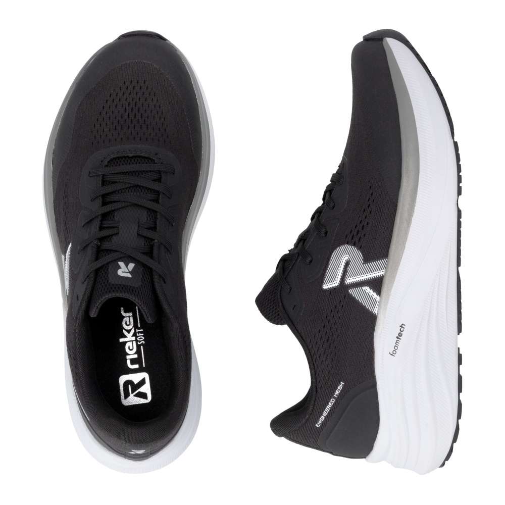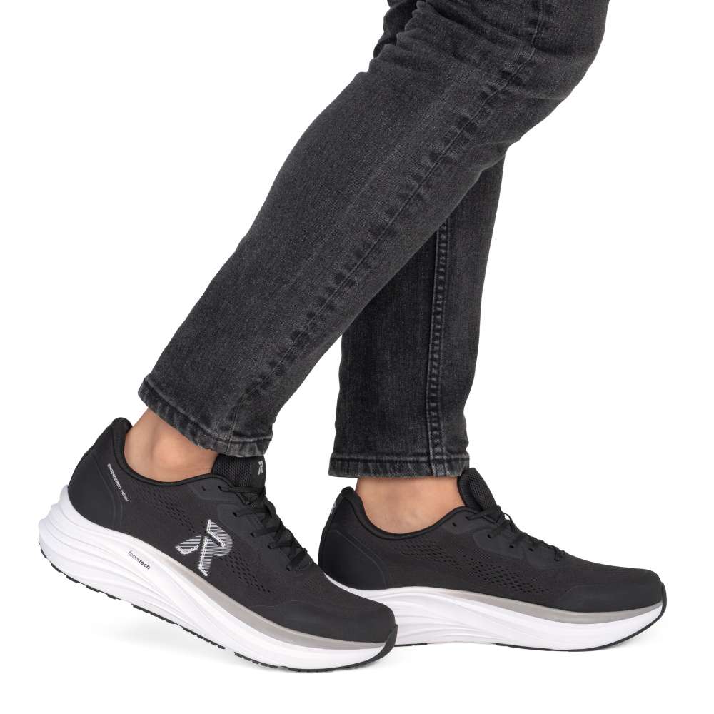 Moderní styl a maximální pohodlí se dokonale spojují v těchto teniskách RIEKER, které jsou navrženy pro aktivní muže preferující komfort bez kompromisů. Nadčasový černý textilní svršek působí univerzálně, zatímco výrazné logo značky dodává teniskám trendový charakter a podtrhuje jejich moderní design. Klasické šněrování umožňuje přesné přizpůsobení tvaru nohy a zajišťuje stabilitu při chůzi. O pocit pohodlí během celého dne se stará měkká, tvarovaná a vyjímatelná stélka, která se přizpůsobí chodidlu. Vyšší podešev v trendy liniích nejen vizuálně zaujme, ale zároveň efektivně tlumí nárazy, poskytuje pevnou oporu noze a podporuje přirozený pohyb chodidla. Tyto tenisky RIEKER jsou ideálním společníkem pro každý den – do města, do práce i na volnočasové aktivity. Dokonalá souhra moderního vzhledu a maximálního pohodlí díky funkčním technologiím to jsou boty RIEKER Sport.