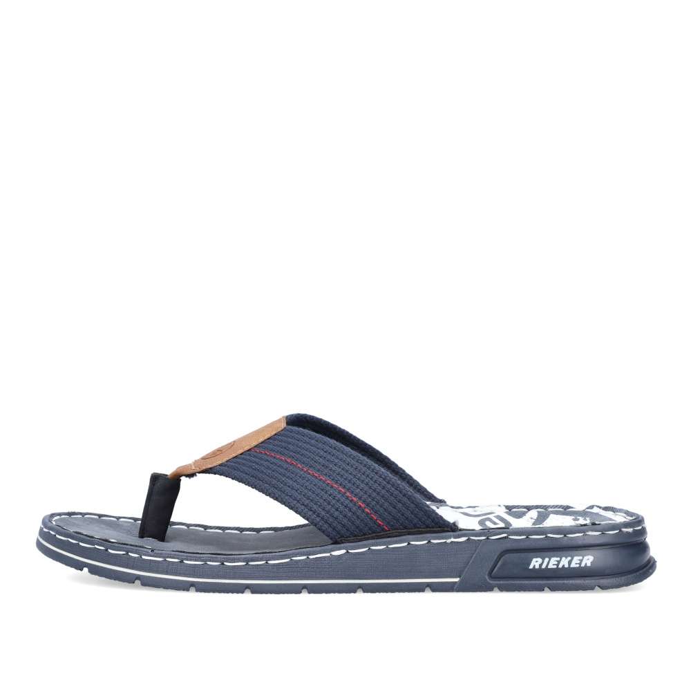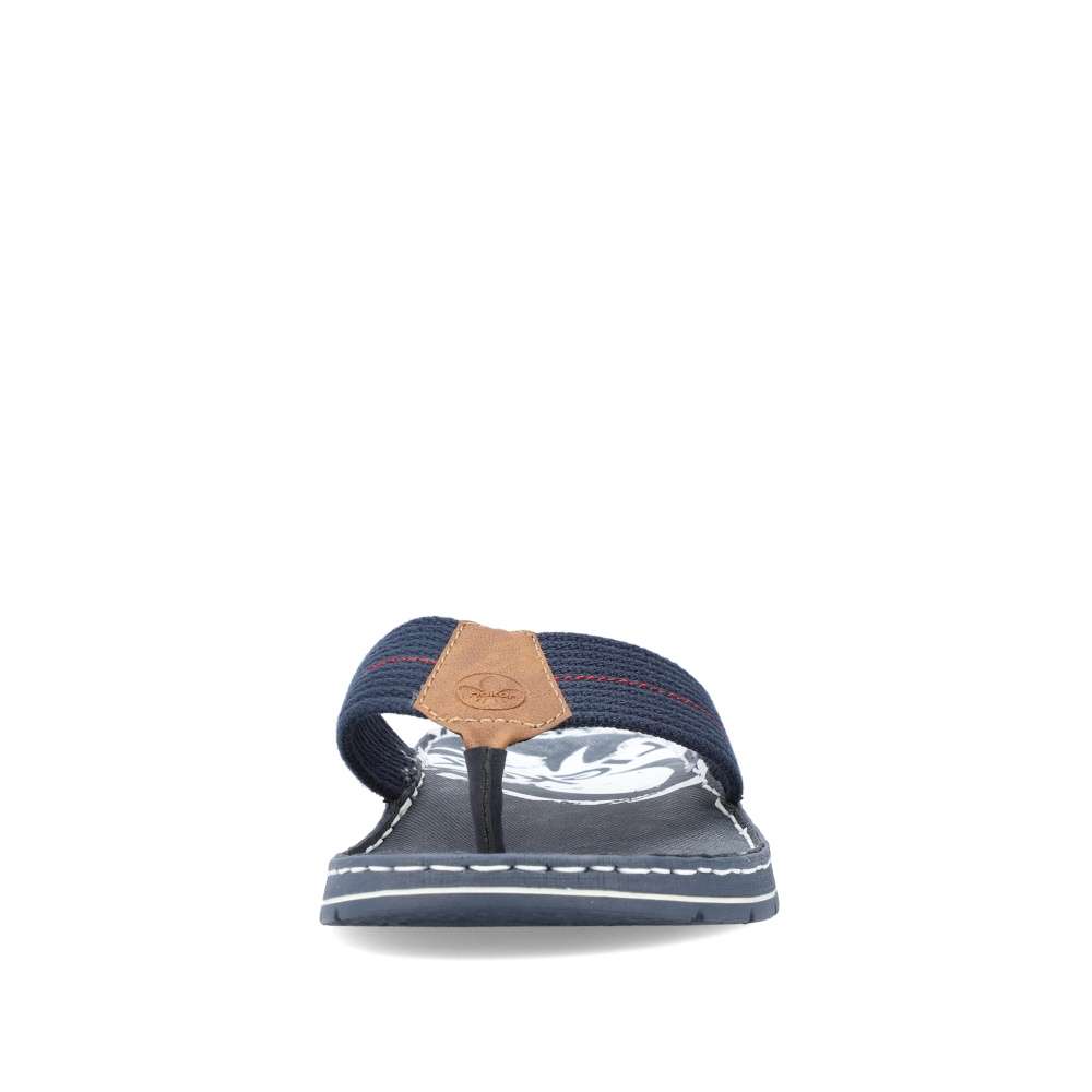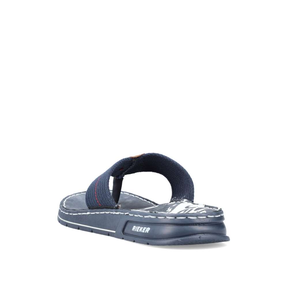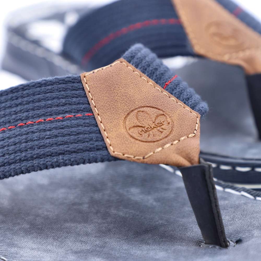 Pánské nazouváky RIEKER žabkového stylu zaručeně ocení každý moderní muž. Textilní pásky jsou ozdobeny kontrastním prošíváním a hnědou nášivkou s vytlačeným logem značky. Měkká textilní stélka společně se stylovou podešví, která je se svrškem spojena šitím se postarají o pohodlí na každém kroku. Letní posezení s přáteli nebo procházky kolem moře budou v této obuvi skvělým zážitkem.