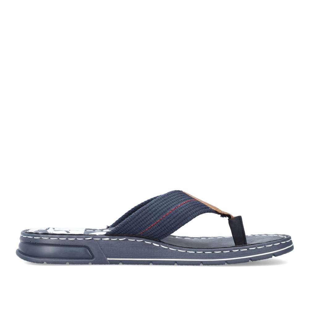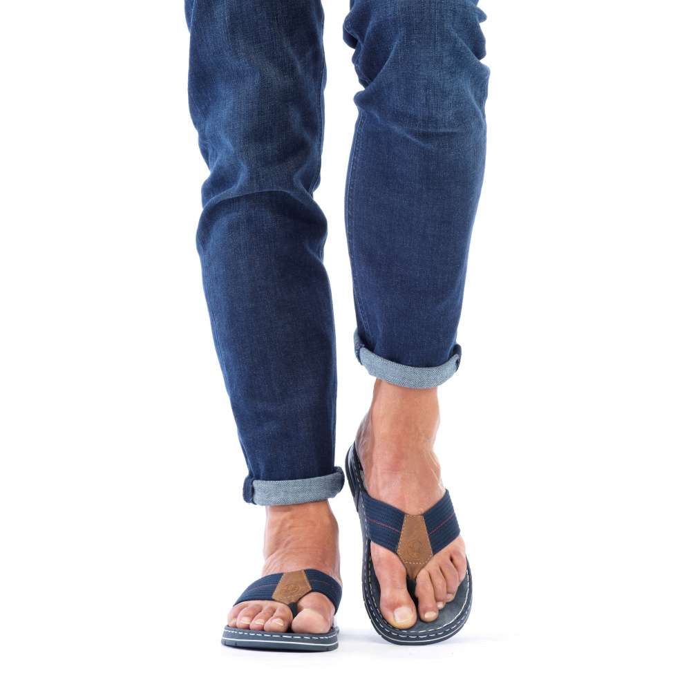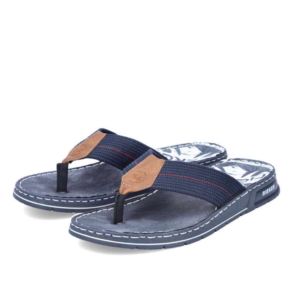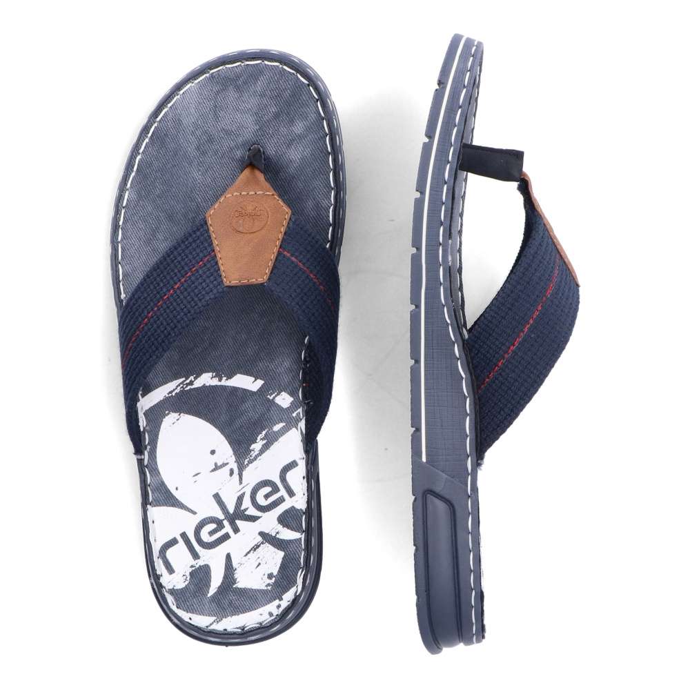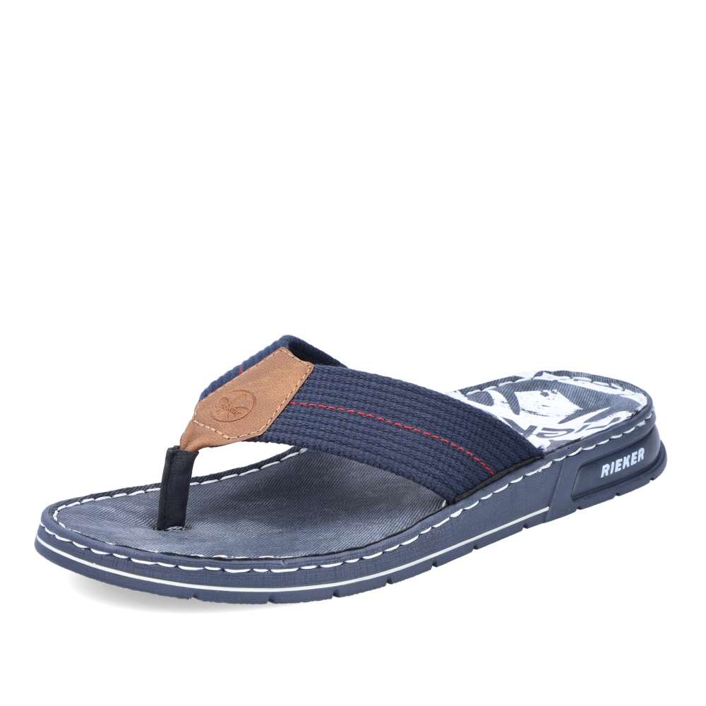 Pánské nazouváky RIEKER žabkového stylu zaručeně ocení každý moderní muž. Textilní pásky jsou ozdobeny kontrastním prošíváním a hnědou nášivkou s vytlačeným logem značky. Měkká textilní stélka společně se stylovou podešví, která je se svrškem spojena šitím se postarají o pohodlí na každém kroku. Letní posezení s přáteli nebo procházky kolem moře budou v této obuvi skvělým zážitkem.